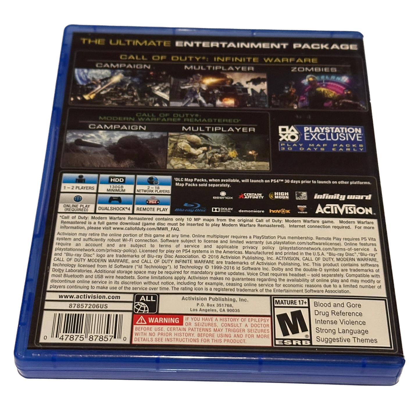 The Call of Duty: Infinite Warfare Legacy Edition is a 2-games-in-1 package that includes Call of Duty: Infinite Warfare and Call of Duty: Modern Warfare Remastered. This edition is available for both PlayStation 4 and Xbox One.