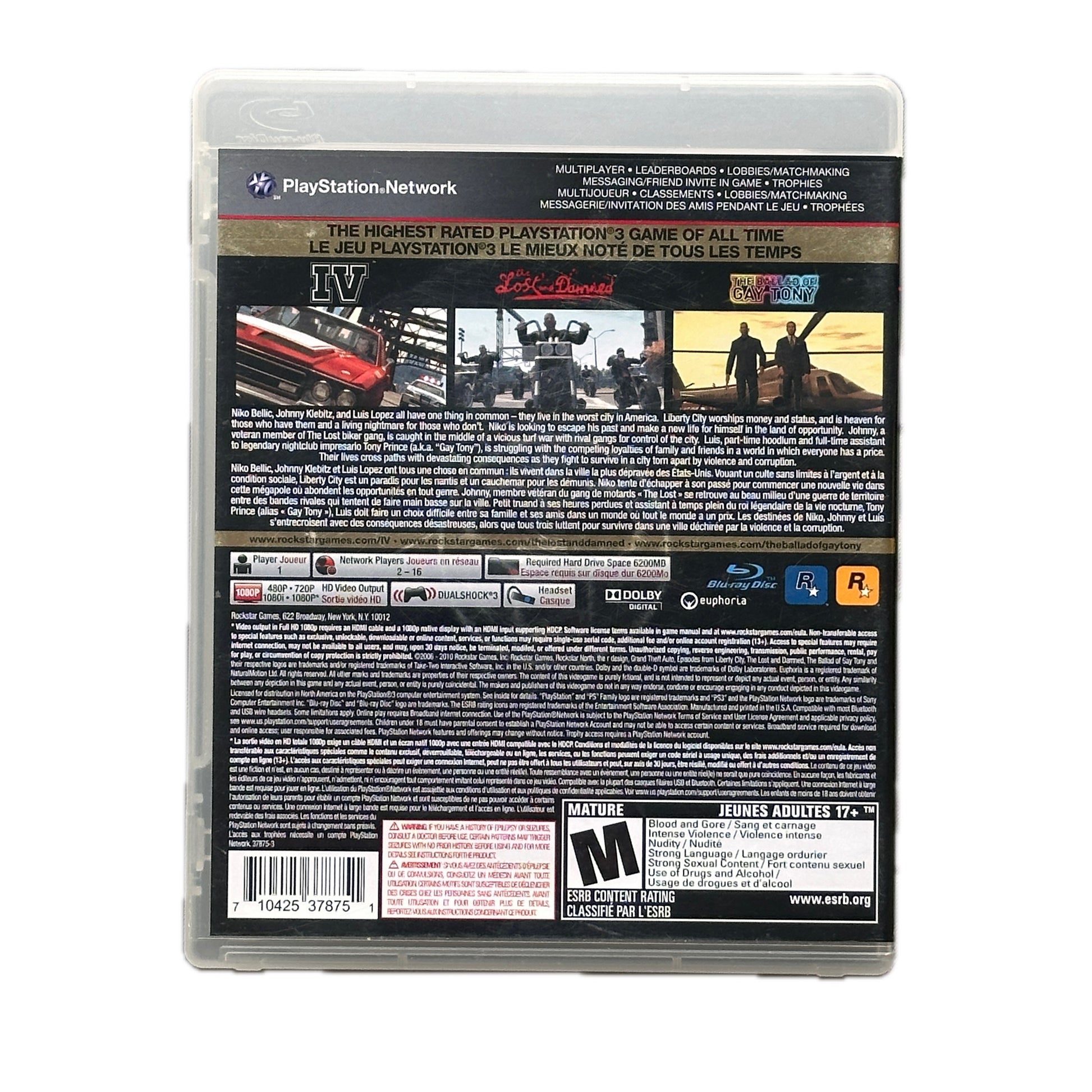 Grand Theft Auto IV & Episodes from Liberty City: The Complete Edition for the Sony PlayStation 3 is a comprehensive package that includes the main game, Grand Theft Auto IV, along with its two expansion packs, The Lost and Damned and The Ballad of Gay Tony. This collection was released to provide players with a complete gaming experience, combining all the content into one cohesive package. The Complete Edition was first available for the PlayStation 3 and Xbox 360 consoles, and later for PC, though the digital version of Episodes from Liberty City no longer exists as a separate game for PC as of March 19, 2020, being replaced by Grand Theft Auto IV: The Complete Edition.
