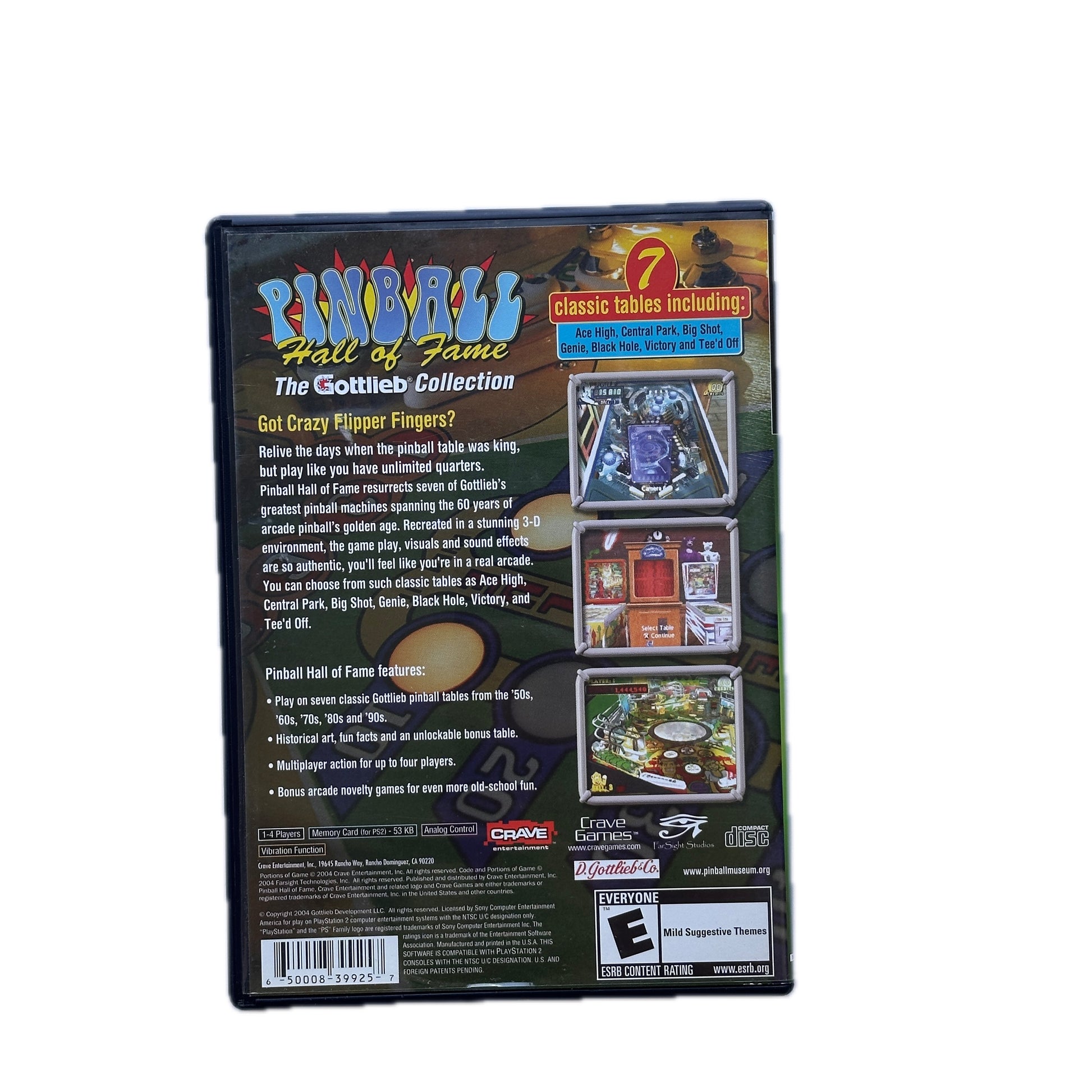 Pinball Hall of Fame The Gottlieb Collection is a 2004 pinball video game developed by FarSight Studios and published by Crave Entertainment. This game offers players an immersive experience with authentic simulations of more than eight classic pinball machines from the 1960s through the 1990s. Each table is a recreation of real-world pinball machines, providing a nostalgic journey through the history of pinball. The game features realistic physics, detailed graphics, and sounds captured directly from the actual tables, enhancing the overall gaming experience.