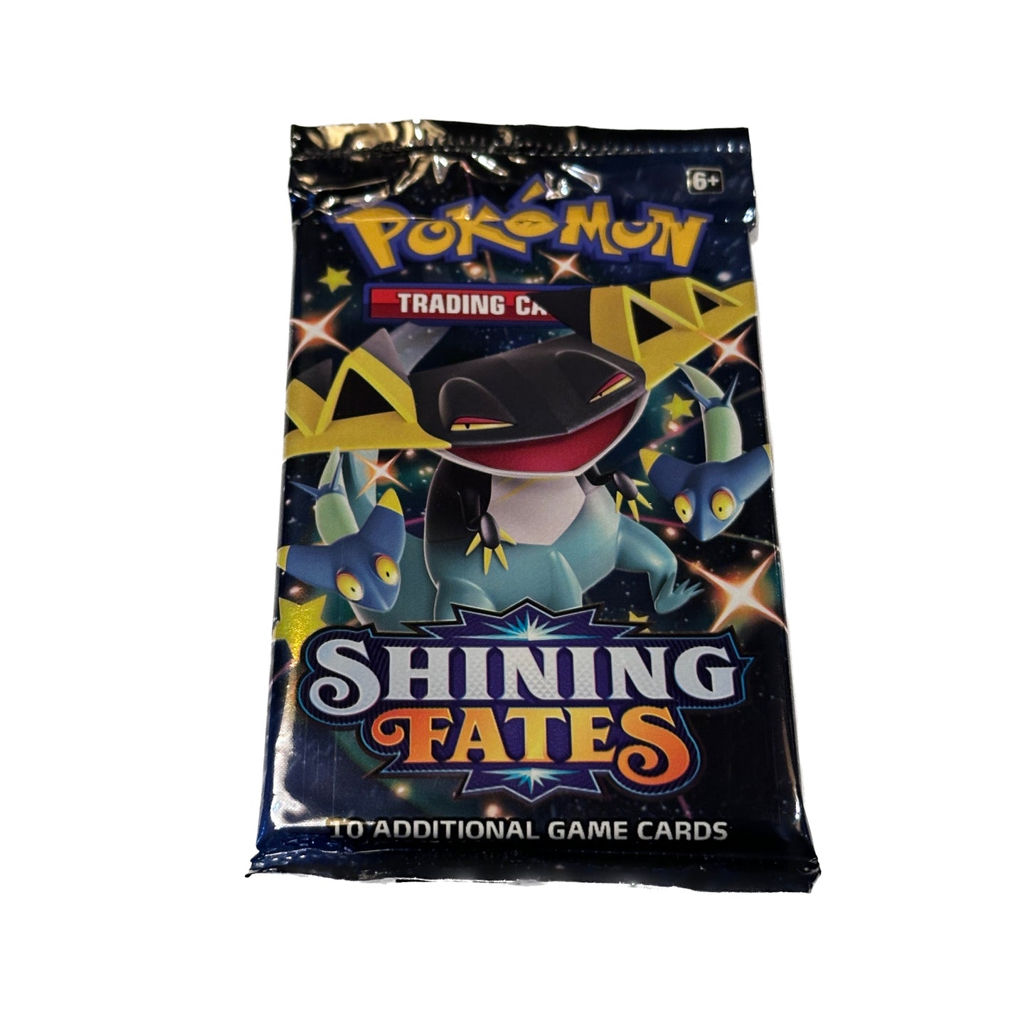 Contains: Pokémon Shining Fates is a special expansion within the Sword & Shield Series of the Pokémon Trading Card Game. As the fourth subset released during the Sword & Shield Era, it includes over 100 Shiny Pokémon on stunning etched cards. Additionally, there are more than 30 Pokémon V and Pokémon VMAX cards, including the legendary Shiny Charizard in its Gigantamax form. This expansion is a combination of the Japanese Shiny Star V subset, the Venusaur & Blastoise VMAX Starter Sets, and the VMAX Special Set. The 122-card Shiny Vault subset is where the Shiny Pokémon cards can be found, with the possibility of one appearing in a booster to replace the Reverse Holofoil card.