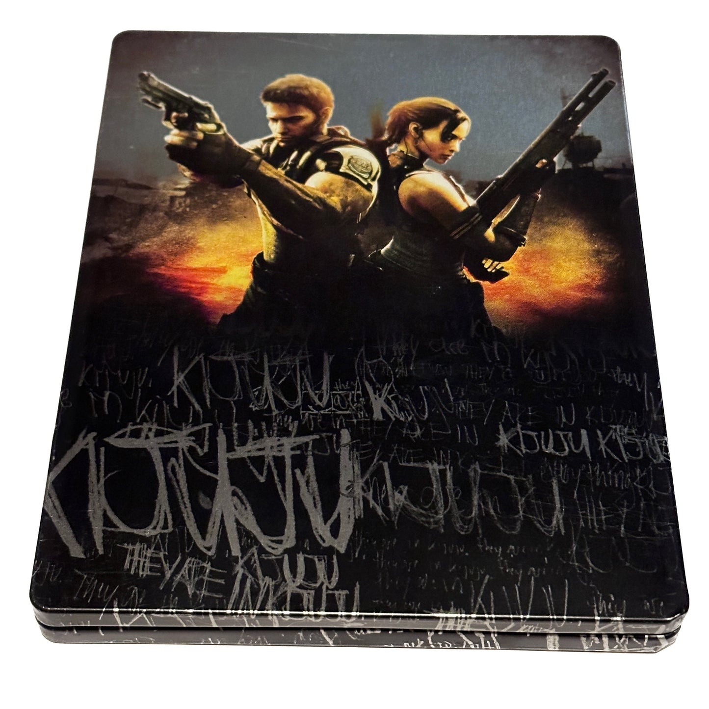 The Resident Evil 5 Collectors Edition Steel Book for Sony PS3 is a special release of Capcom's survival horror game Resident Evil 5. It was launched on March 13, 2009, alongside the standard edition, and includes a steelbook case and bonus disc. The disc features "The Making of Resident Evil 5" documentary, a digital art gallery, and trailers for Resident Evil: Degeneration. The gameplay centers around Chris Redfield and Sheva Alomar as they investigate a bioterrorism threat in Africa. Featuring fast-paced action, intense combat, and varied environments, players can choose to control either Chris or Sheva and switch between them at will.